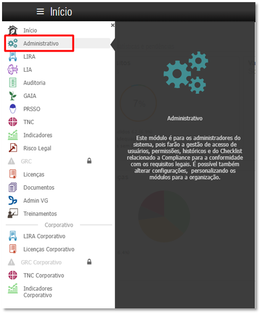 Ao entrar no sistema, acesse o módulo Administrativo.