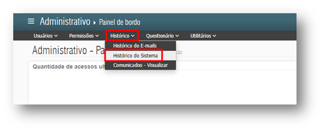 A visualização do histórico geral é restrita a usuários com perfil de Administrador (global) ou a aqueles com perfis personalizados pela unidade com permissão específica para isso.