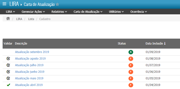 LIRA – Como validar as cartas de atualização do sistema