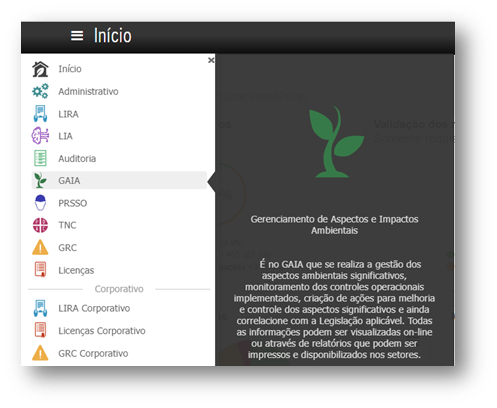 Ao fazer o login no sistema, acesse o módulo GAIA.