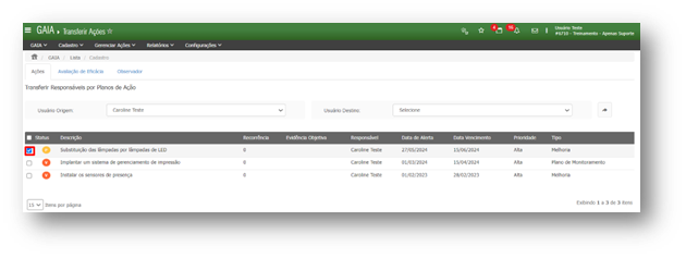 GAIA – Como transferir planos de ação