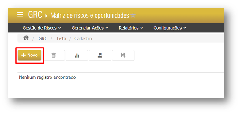 Clique na opção +NOVO para cadastrar um novo risco ou oportunidade.