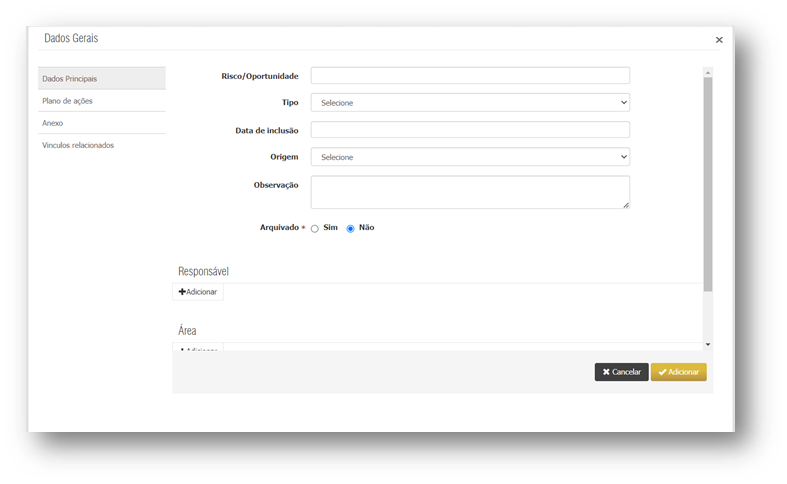 Risco/Oportunidade: Campo onde deve ser descrito o risco ou oportunidade a ser cadastrado;