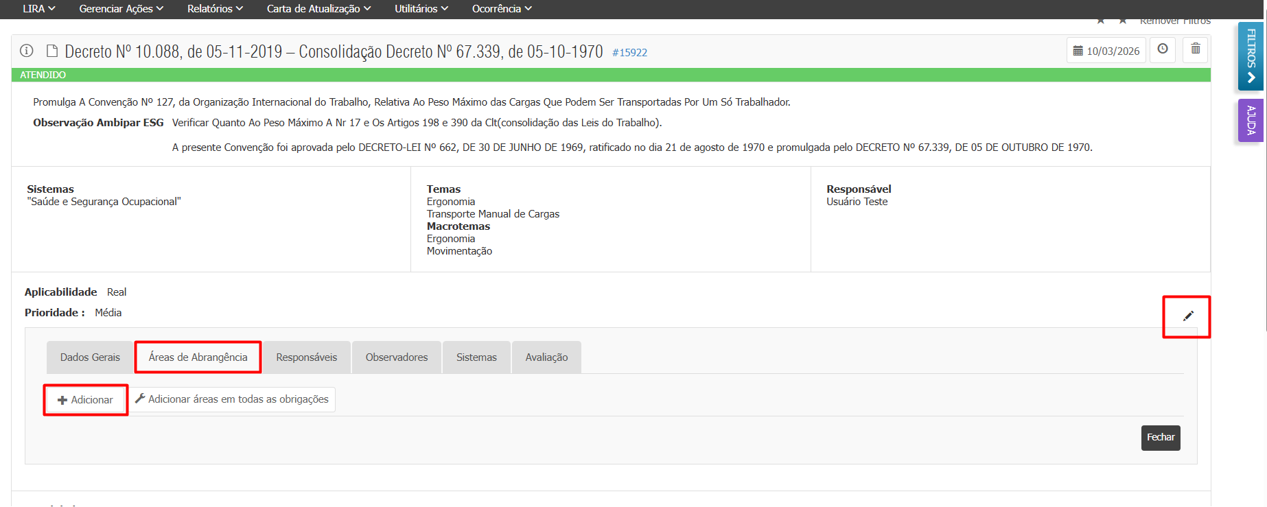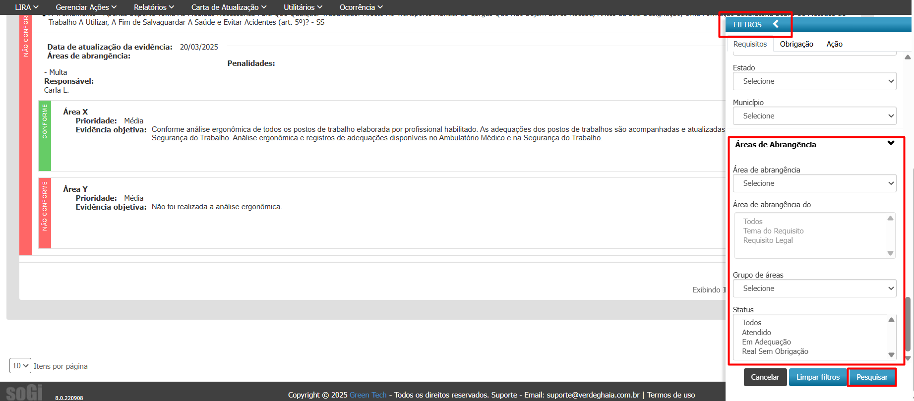 LIRA – Atendimento de Requisitos e Obrigações por Área
