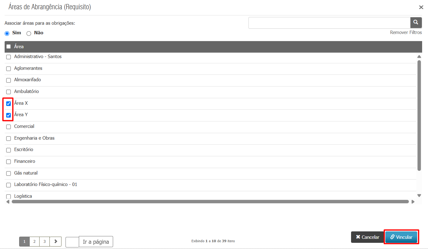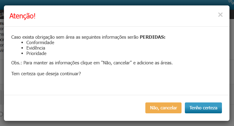 Sendo assim o sistema separa as áreas na obrigação, podendo sinalizar diferentes evidencias e conformidades por área.