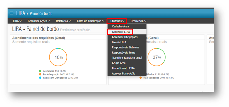 No módulo “Lira”, vá ao menu “Utilitários” e clique em “Gerenciar Lira”.