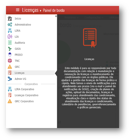 Ao entrar no SOGI, acesse o Módulo Licenças.